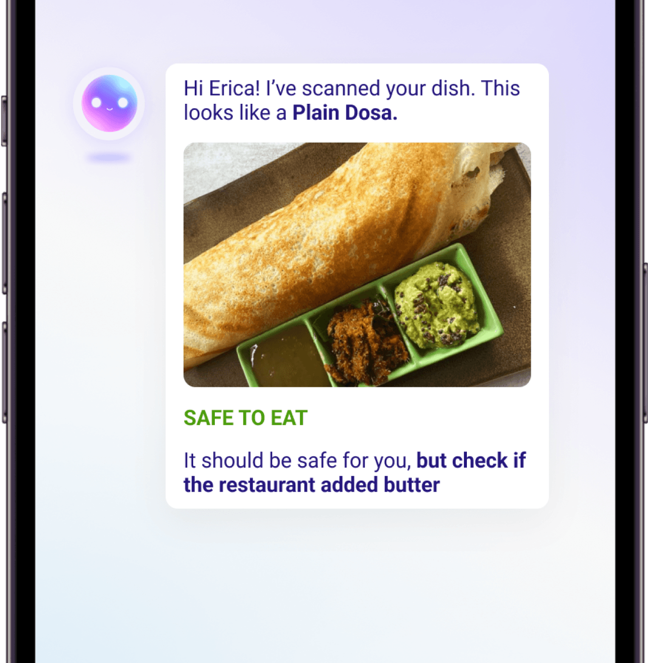 Receive simple, context-based safety suggestions when trying new cuisines.