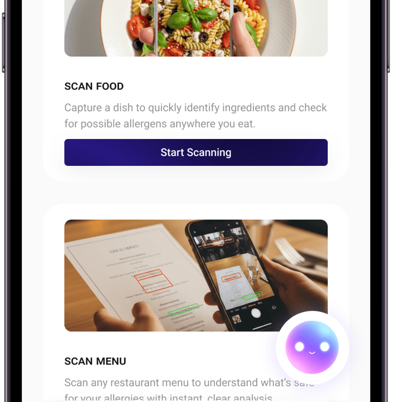 Identify allergens instantly by pointing your camera at any dish/menu .