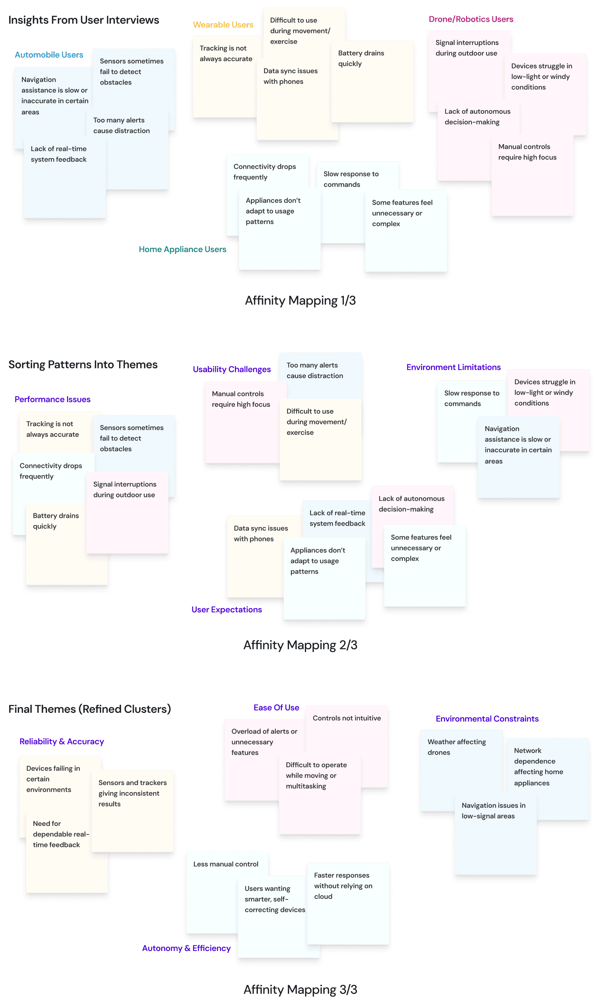 This internship helped me understand how to design within real technical constraints, especially when working with emerging technologies like edge-based AI. I learned how to ground ideas in actual user needs, validate assumptions through structured research, and translate scattered insights into clear opportunity areas.