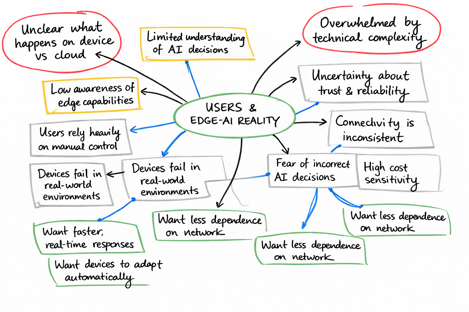 A research-driven exploration of how Generative AI can be brought to the edge by mapping cross-domain user frustrations, analyzing feasibility challenges, and shaping early concepts that bridge the gap between technological potential and actual human needs.